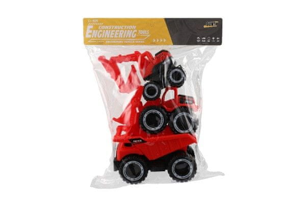 Ta zbirka gradbenih strojev ne sme manjkati v zbirki vsakega dečka. Avtomobili so narejeni iz plastike in se prosto vozijo. Ta zbirka strojev je primerna tudi za velike gradbene projekte v vrtcu ali peskovniku. Komplet vsebuje 3 avtomobile velikosti približno 15–19 cm. Dimenzije paketa 31 × 34 × 10 cm. Primerno za otroke od 3. leta starosti dalje.