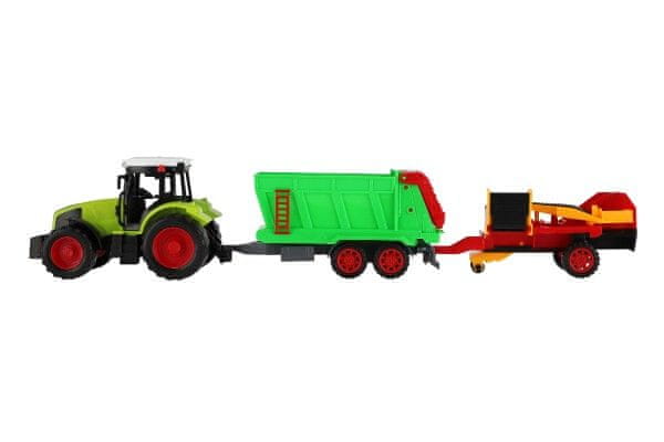 Traktor z vlečno napravo in vztrajnikom je za vsakega malega kmeta nepogrešljivo in vsestransko orodje. Dimenzije paketa 59 × 13 × 10 cm. Primerno za otroke od 3. leta dalje.