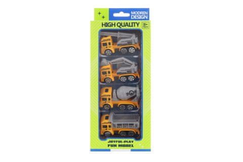 Komplet gradbenih avtomobilov, ki se prosto premikajo. Celoten opis