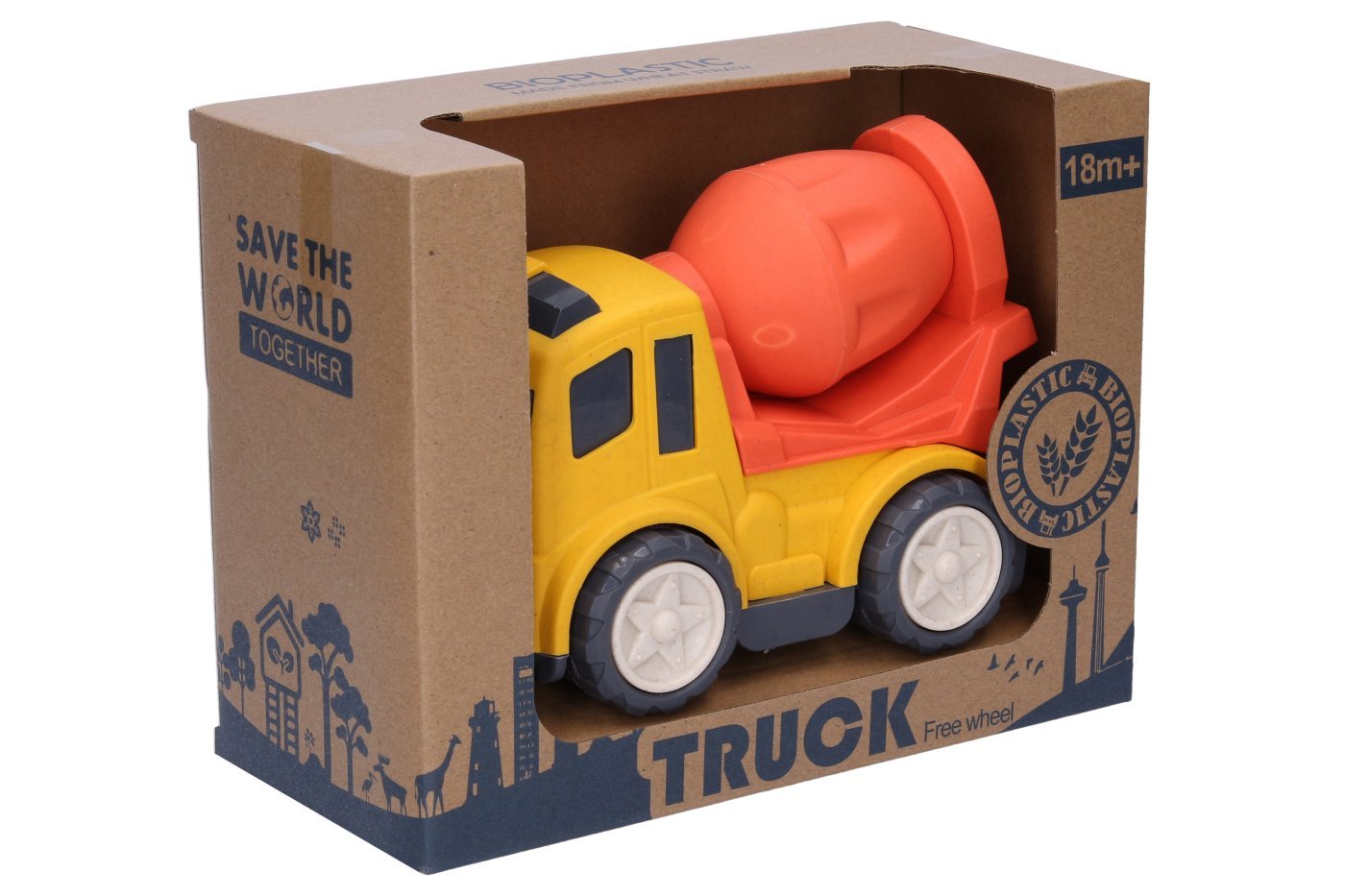 Stroje za gradnjo avtomobilov. Velikost 17 cm. 4 različice – bager, žerjav, mešalnik, smetarsko vozilo. 2 barvni različici – modra, rdeča. Brezplačna kolesa.