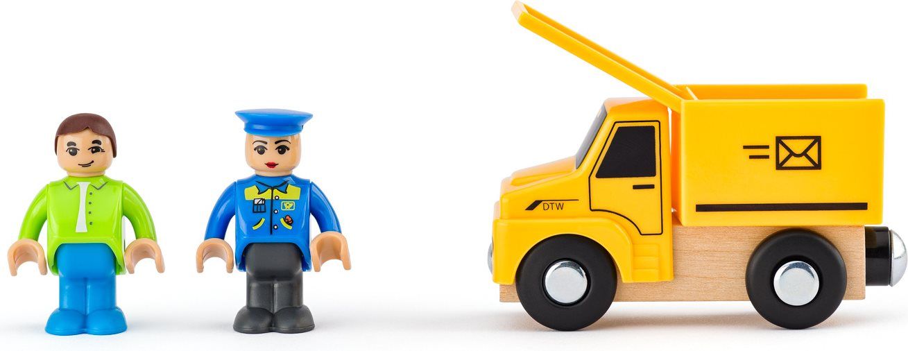 4 avtomobili, 1 voziček, 1 lesena kocka (tovor), 2 plastični figurici voznika traktor, bager, smetarski tovornjak, poštarski tovornjak na vozilo je mogoče pritrditi magnete