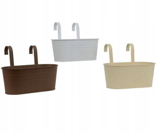Ta viseči balkonski sadilnik ima zanimiv dizajn in je na voljo v več barvah. Praktičen ročaj omogoča, da ga obesite na različnih mestih – na balkonih, terasah ali celo na vrtu. Je zanimiv dekorativni dodatek s široko paleto možnosti uporabe. Na voljo v več barvah. Prosimo, da v komentarjih naročila navedete želeno barvo, sicer vam bo poslana naključna barva. Barvni odtenki se lahko nekoliko razlikujejo od dejanske barve zaradi različne razpoložljive računalniške opreme in njenih individualnih nastavitev, zlasti nastavitev monitorja in grafične kartice. Parametri: Višina sadilnika: 14 cm, Skupna višina: 26 cm, Dolžina: 32 cm, Globina: 13,3 cm, Širina podnožja: 12,5 cm