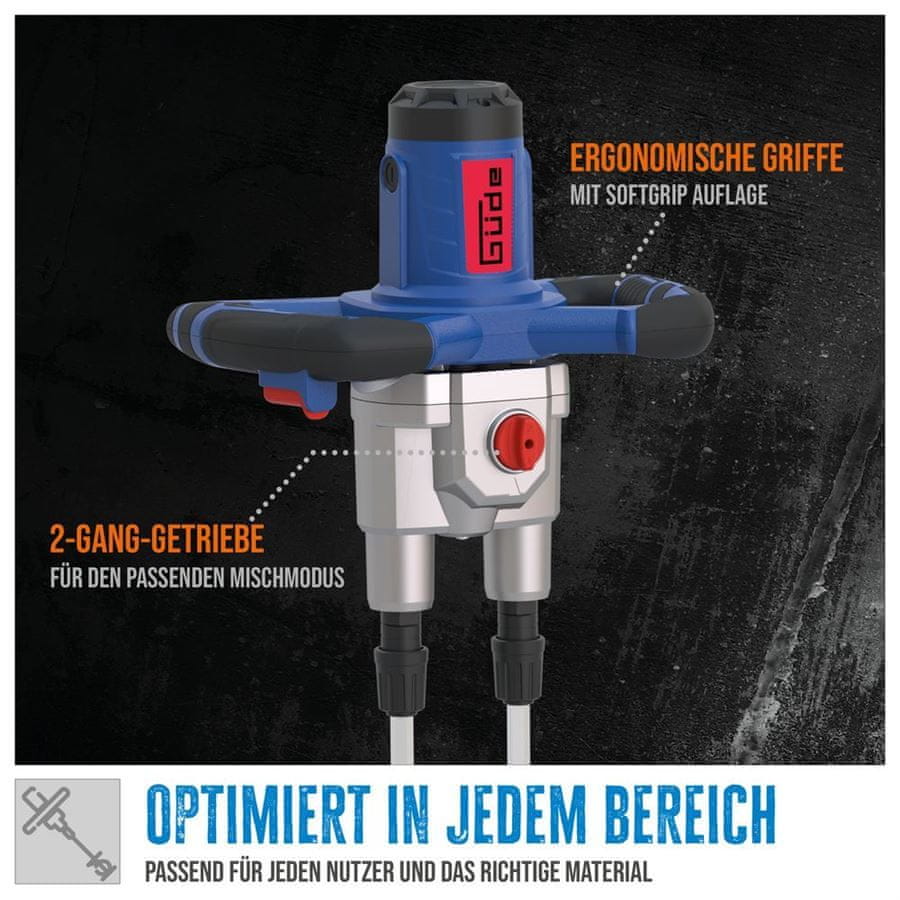 Güde GRW 1811.1 TWIN – profesionalen, zmogljiv in udoben mešalnik, ki omogoča čiste in enotne rezultate pri gradbenih materialih.