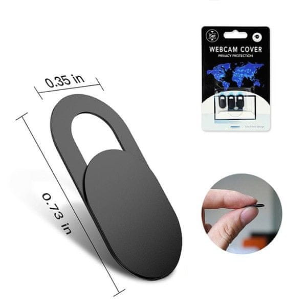 Kompaktna velikost in debelina manj kot 1 mm omogočata nemoteno uporabo s prenosniki, tablicami in telefoni. Montažna folija 3M zagotavlja trajno pritrditev na katero koli površino. Ima vodila za odpiranje in zapiranje kamere. Na voljo v črni barvi. Dolžina: 19 mm, širina: 9 mm.