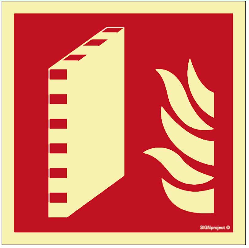 - Barve : Rdeč znak s svetlim piktogramom stene in ognja.