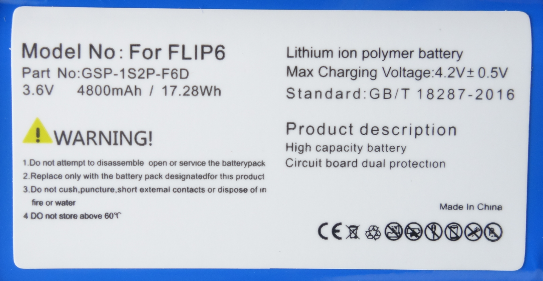 Baterija Polnilna baterija za zvočnik JBL FLIP 6 GSP-1S2P-F6D 4800mAh 3,7V