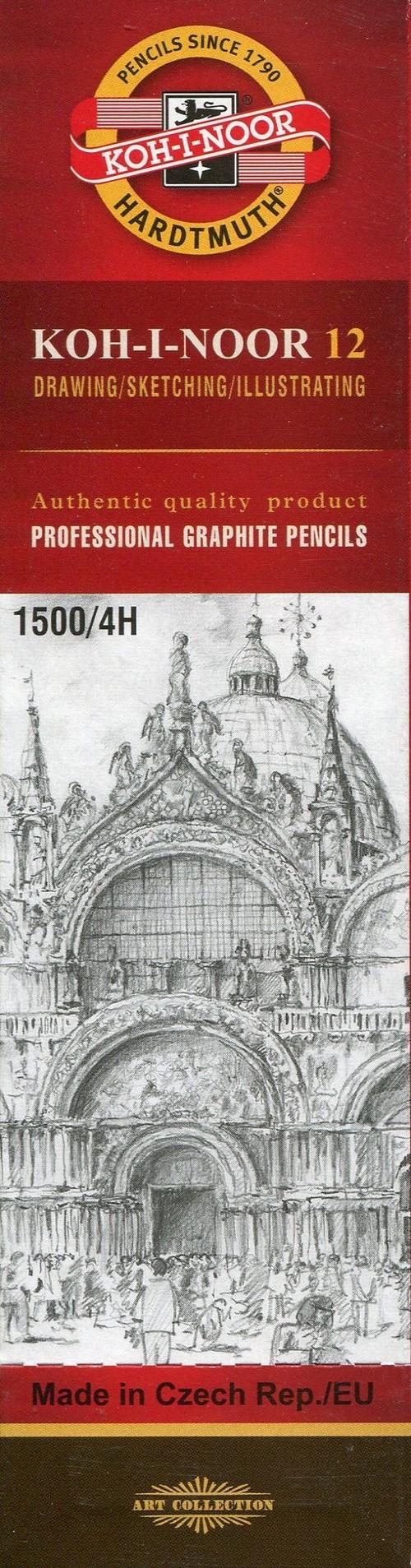 Grafitni svinčniki KOH-I-NOOR serije 1500 se odlikujejo po visoko čistem grafitu. Okvirji iz cedrovine so večbarvno lakirani. Na voljo so v granulacijah od 10H do 8B.