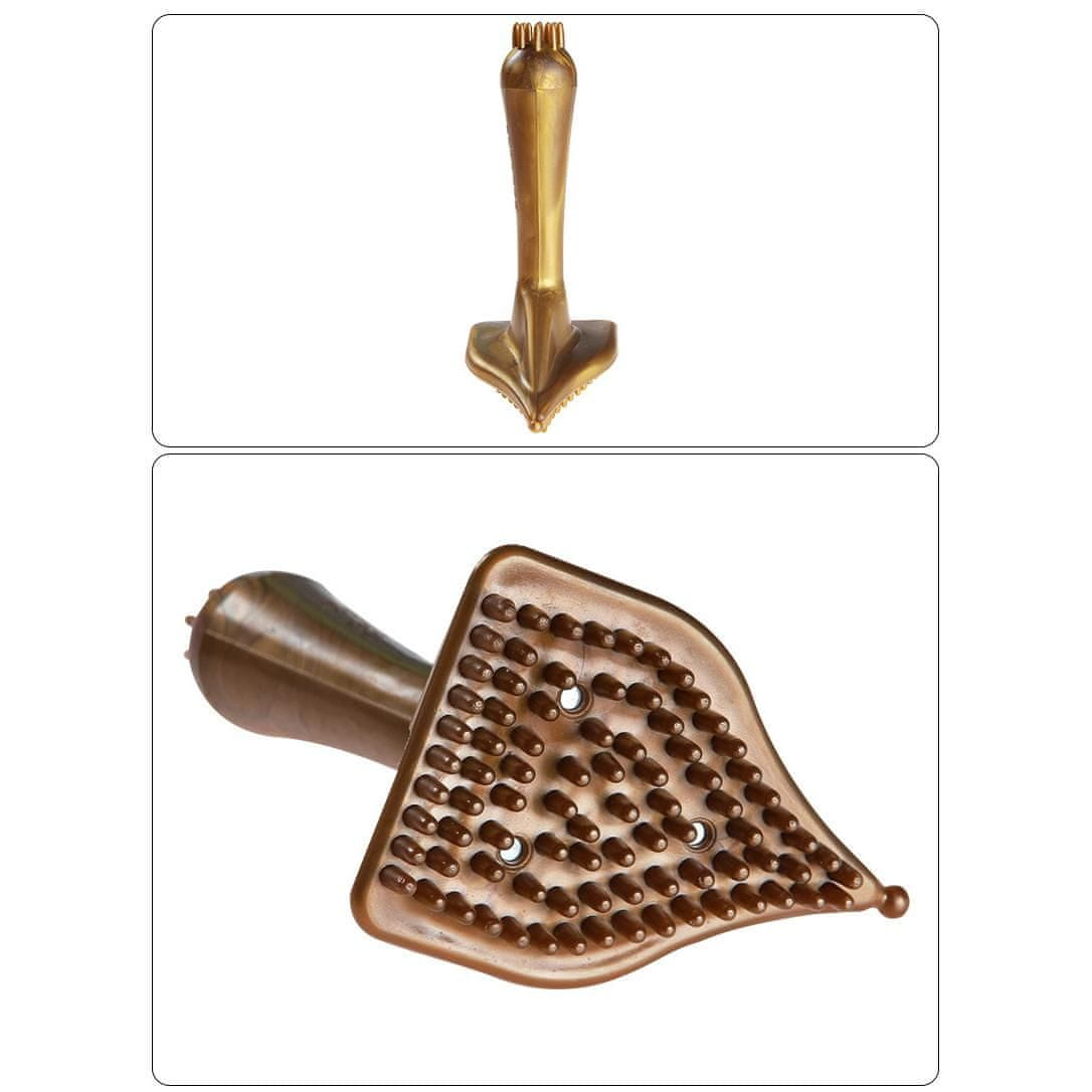 Vas mučijo napeta in boleča ramena? Se počutite pod stresom, utrujeni ali nemočni? Potem vam bo ta masažna naprava lahko zelo koristila. Izdelek je enostaven za uporabo, njegova posebna oblika z vgrajenimi magneti pa je primeren za masažo, akupresuro in suho kopel. Opremljen z mehkimi in okroglimi zobmi.