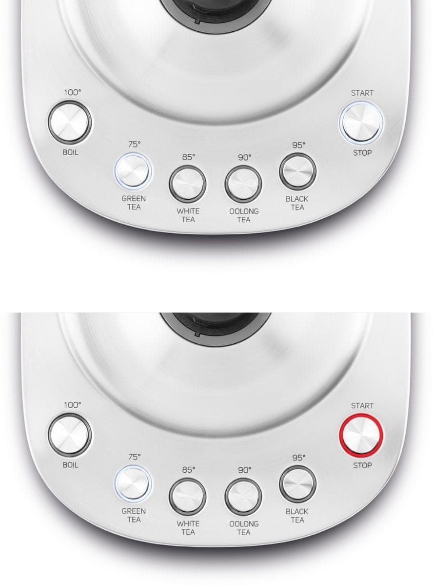 - 5 temperaturnih možnosti glede na vrsto čaja – 75 °C (zeleni), 85 °C (beli), 90 °C (oolong), 95 °C (črni), 10 °C (instantni napitki)