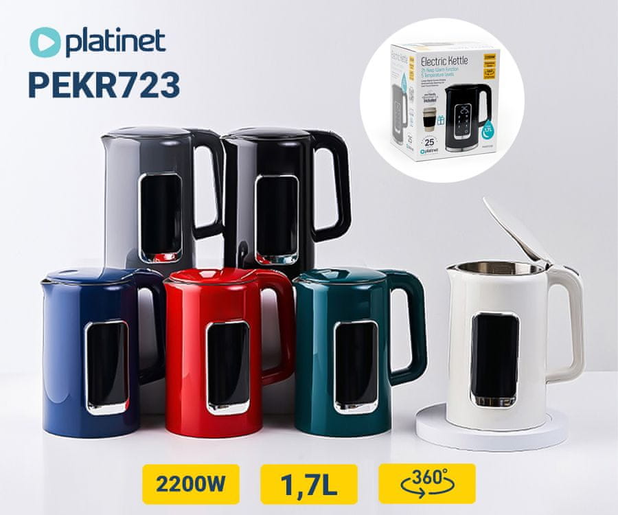 Izboljšajte svojo kuhinjsko izkušnjo z elegantnim digitalnim električnim grelnikom Platinet PEKR723! Izdelek zadovoljuje vse potrebe po toplih napitkih, od občutljivih čajev do temne črne kave.