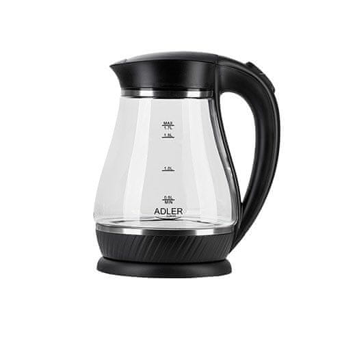Adler Električni kotliček Adler AD 1274 B, 1.7 L, 2200 W, črna in prozorna, z zaščito pred prevretjem in 360° osnovo