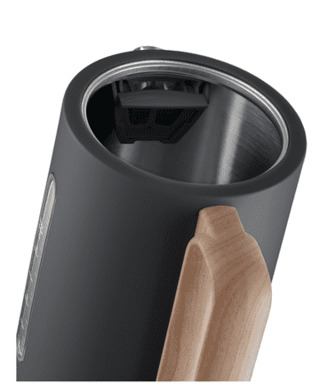Lonec na pritisk je opremljen z veliko luknjo za polnjenje in jasnim vodnim žigom za takojšen pregled nad količino vode v notranjosti. Odstranljiv sedimentni filter poskrbi, da je prekuhana voda vedno čista in brez neželenih delcev, kar prispeva k boljšemu okusu vaših pijač. Skrit grelni element omogoča hitro in enakomerno segrevanje vode, lučka delovanja pa vas obvešča o stanju ogrevanja. Zaradi popolnoma vrtljivega sredinskega priključka je kotliček enostavno dostopen iz katerega koli kota za enostavno rokovanje. Prostor za shranjevanje napajalnega kabla v podnožju pomaga ohranjati vašo kuhinjo pospravljeno in organizirano.