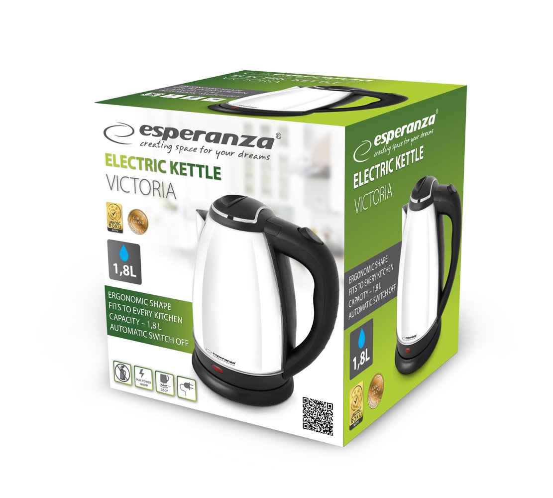 Moderen in eleganten Esperanza VICTORIA kuhalnik, iz nerjavečega jekla, je na voljo v več barvnih različicah, da dopolni vsako kuhinjo. Njegova ergonomska oblika in funkcionalnost zagotavljata udobje ob vseh urah dneva in v vsakem interierju. Opremljen z udobnim, vgrajenim grelnim elementom, kuhalnik zagotavlja enostavno postavitev na svojo osnovo. Toplotno odporen ročaj zagotavlja udobje in visok nivo enostavne uporabe.