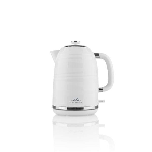 Kuhalnik ni več le stvar praktičnosti, temveč je sčasoma postal oblikovalski vložek. Pogosto se zgodi, da je čajnik tisti, ki prispeva k popolni in dovršeni zasnovi prostora. Plastični kotlički so na voljo in cenovno ugodni. Odličen primer tega je rokopis proizvajalca ETA. Zaradi 2200 W moči grelec vodo segreje skoraj v hipu, zato bo čakanje na vrelo vodo stvar preteklosti. Prednost je velika prostornina 1,7 l in odstranljiv filter. Čajnik ima vgrajeno zaščito pred pregrevanjem, če je vklopljen brez vode. Samodejni izklop je ena od funkcij, ki se je hitro navadite. Zato se čajnik sam izklopi, takoj ko zavre vodo. Za boljšo vidljivost je nameščen indikator nivoja vode. Izdelek je izjemna prednost za tiste, ki se izgubijo, ali je naprava v uporabi ali ne. Najlažja rešitev je dodajanje indikatorja delovanja. Zaradi vrtljivega podstavka je uporaba preprosta, saj lahko napravo vzamete in spet postavite pod drugačnim kotom.