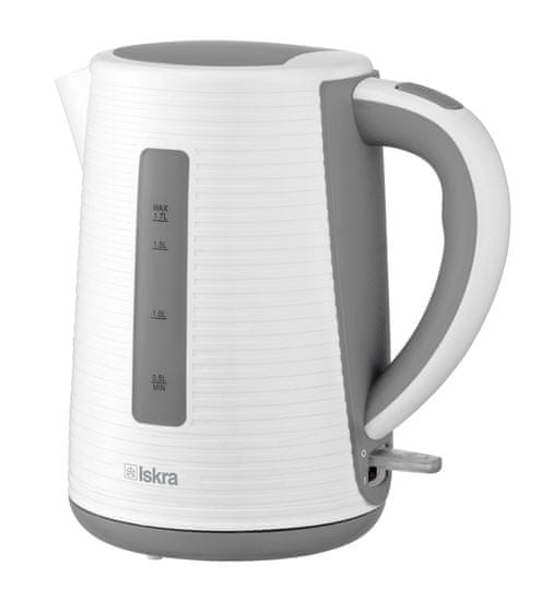 Električni kuhalnik vode ponuja prostornino 1,7 litra in deluje z močjo do 2200 W, kar omogoča hitro segrevanje. Opremljen je z osvetljenim stikalom, skritim grelnim elementom ter filtrom za vodo, kar pripomore k boljši kakovosti vode. Dvojna lestvica za nivo vode, gumb za odpiranje pokrova in vrtljiv 360° podstavek povečujejo uporabniško udobje. Vgrajen je dvojni varnostni sistem s samodejnim izklopom in zaščito pred pregrevanjem, ki zagotavlja varno uporabo.