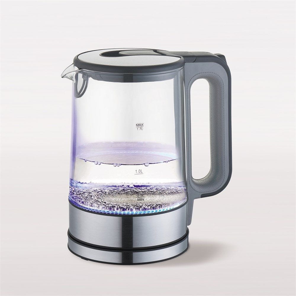 Ta 1,7-litrski steklen električni grelnik vode je odlična rešitev za tiste, ki cenijo eleganco, funkcionalnost in visokokakovostno izdelavo. Prozorno ohišje iz toplotno odpornega stekla ne le izgleda izjemno moderno, temveč vam omogoča tudi opazovanje procesa vrenja vode, kar prispeva k privlačnosti in praktičnosti naprave. Ta zanesljiv aparat se bo dobro podal v vsako kuhinjo – od minimalistične do klasične.