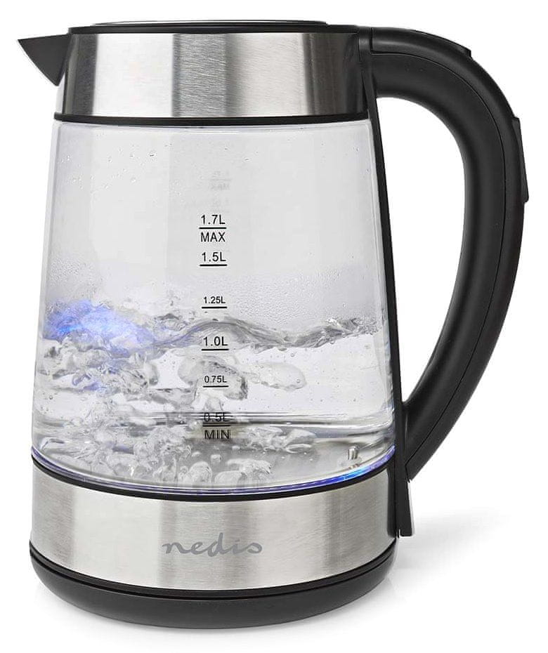 Nedis Električni čajnik KAWK320EGS/ prostornina 1,7 l/ 360° vrtenje/ poraba energije 2200 W/ steklo/ prozoren