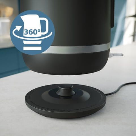 Grelnik vode z dvojno steno je zasnovan za hitro in varno segrevanje vode z močjo 1850–2200 W ter prostornino 1,7 l, kar zadostuje za 7 skodelic napitkov. Notranja posoda iz nerjavečega jekla (primerno za prehrano) zagotavlja higieno in dolgo življenjsko dobo, medtem ko izolacijski sloj ohranja zunanjo površino hladno na dotik. Vgrajeni regulator Strix preprečuje delovanje brez vode in omogoča samodejni izklop. Grelnik vključuje 360° vrtljiv podstavek za preprosto uporabo, oznake za skodelice za energetsko učinkovitost ter priročen navijalnik kabla za urejeno shranjevanje.