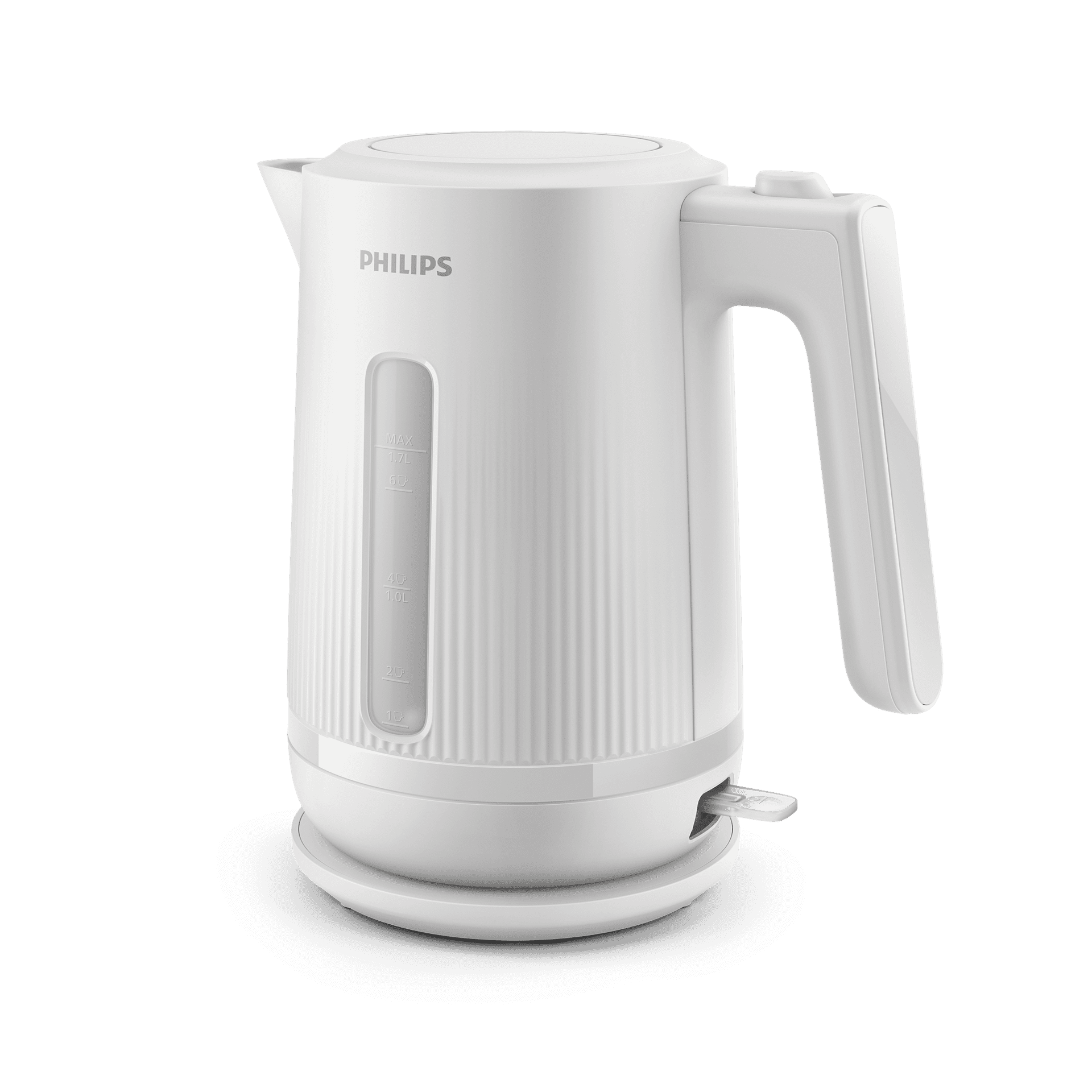 Grelnik vode Philips serije 3000 je popoln dodatek za vašo kuhinjo. S prostornino 1,7 l in močjo delovanja do 2000 W omogoča hitro pripravo toplih napitkov za celotno družino. Zahvaljujoč ploščatemu grelniku iz nerjavnega jekla zagotavlja hitro vretje in enostavno čiščenje, medtem ko osvetljeno okence omogoča natančno polnjenje in prihranek energije. Vgrajen varnostni sistem s samodejnim izklopom preprečuje pregrevanje. Grelnik vključuje 360° vrtljiv podstavek za preprosto uporabo, odstranljiv filter za čisto vodo brez vodnega kamna ter osvetljeno stikalo za prikaz delovanja. Pripravite vročo vodo v stilu, vsak dan.