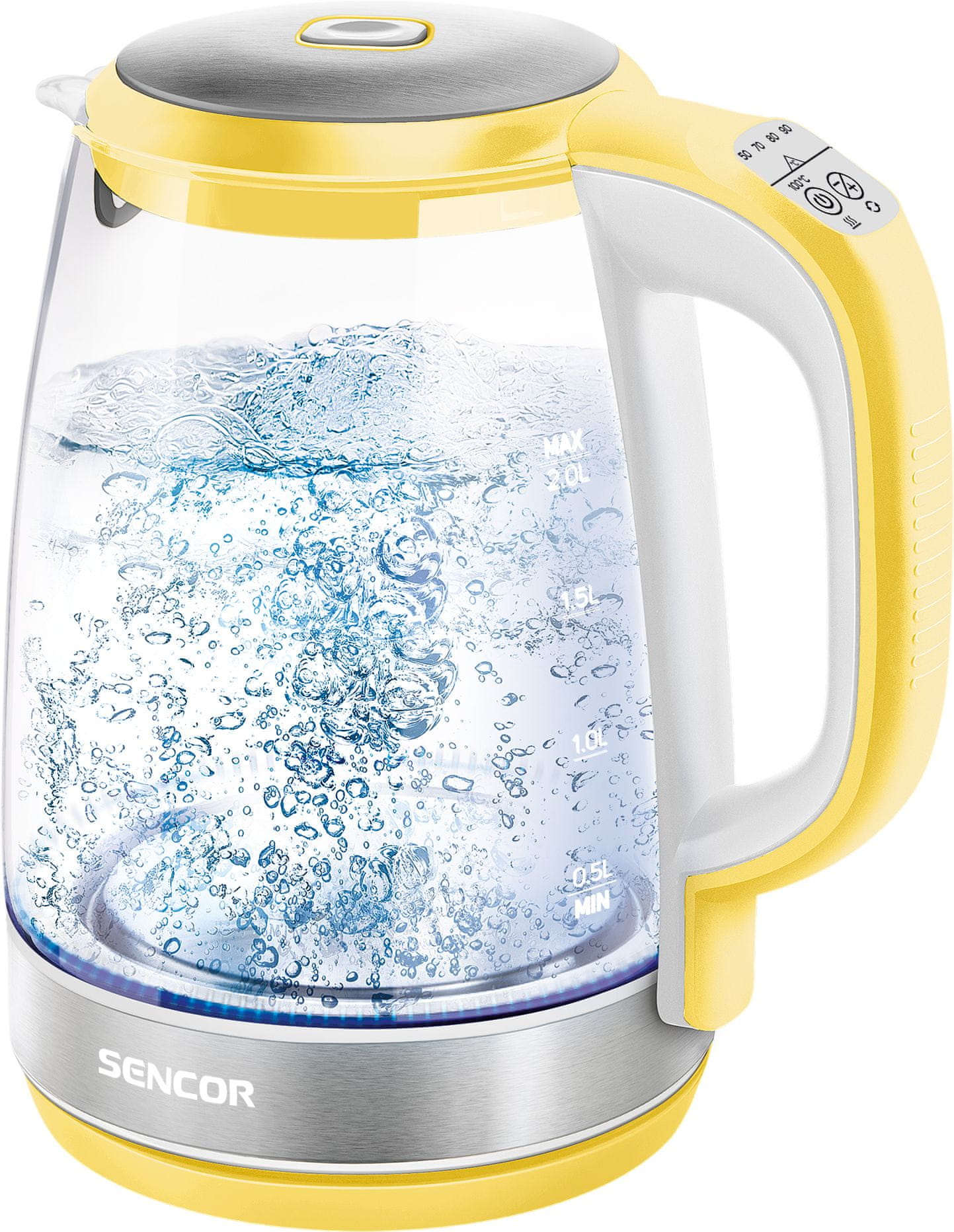 Grelnik vode SENCOR s prostornino 2 litra in močjo 2200 W zelo hitro segreje vodo. Ko je voda segreta, ohranja svojo temperaturo do 30 minut. Temperaturo vode lahko spremenite in grelnik bo sporočil, kdaj se je voda ohladila ali segrela.