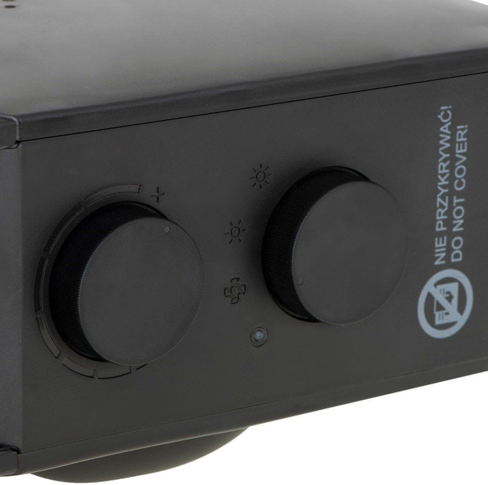Z vrtečim upravljanjem lahko enostavno prilagodite moč in temperaturo, medtem ko indikatorna lučka omogoča hitro preverjanje delovanja grelnika. S priloženim kablom dolžine 1,3 m je mobilnost naprave prav tako zagotovljena, saj jo lahko premikate kamor koli potrebujete.