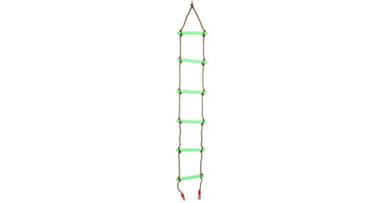 Merco Tarzanova vrvna lestev ne bo le razburljiva zabava za vaše otroke, ampak bo tudi izboljšala njihovo gibljivost, okrepila njihove mišice in vzdržljivost. Lestev je dolga več kot 2 m in široka 30 cm, izdelana iz PE in je dovolj odporna proti nenamernim zlomom. Celotna konstrukcija lestve je obešena na trpežen kovinski obroč, ki drži par 10 mm debelih vrvi. Na vrv je nato obešenih šest 30 cm dolgih plastičnih stopnic. Preprosta zasnova lestve omogoča, da jo zlahka obesite na vodoravno palico konstrukcije, na drevo ali vrtno hišico ali preprosto na vejo drevesa. Poleg tega ima vsaka stopnica na površini nedrseče utore za stabilnejši in trdnejši oprijem ter s tem večjo varnost otrok in odraslih pri plezanju po lestvi navzgor ali navzdol. Vrvna lestev lahko prenese največjo obremenitev do 100 kg. Zato lestev Merco Tarzan obesite na želeno višino in otrokom omogočite, da na zabaven način razvijajo svoje motorične sposobnosti. Za obešanje jo priporočamo kombinirati z izdelki: karabinom Fix Basic, Fix Ultra in obešalnim trakom Connecter (ni vključen).