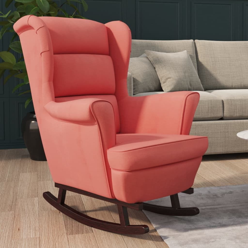 Vidaxl Gugalni stol s krilnim naslonom, roza žamet masiven les
