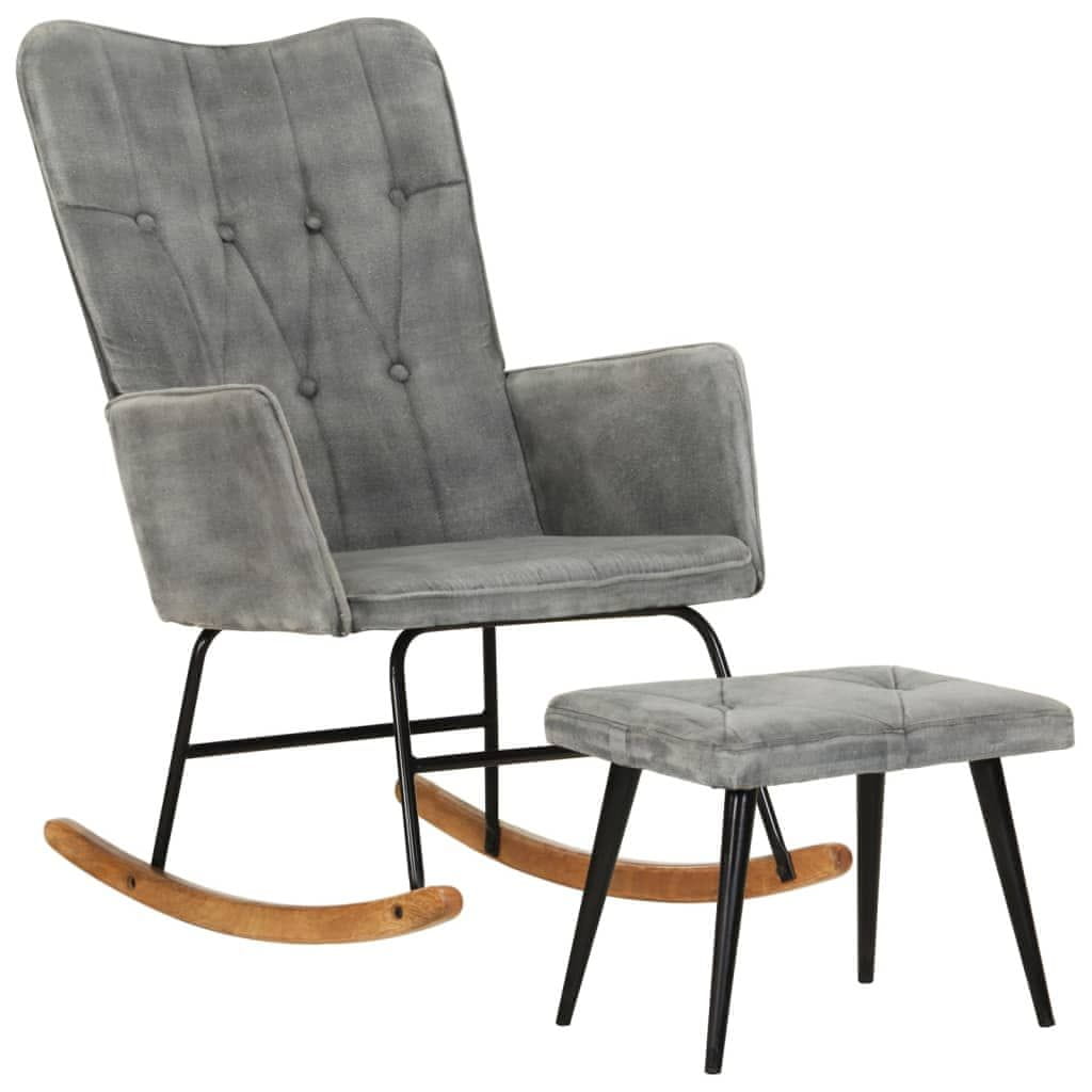 Vidaxl Gugalni stol z naslonom za noge sivo starinsko platno