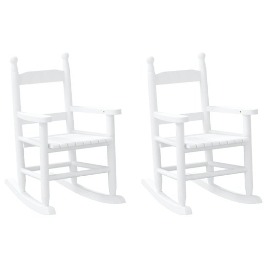 Vidaxl Otroški gugalni stol 2 kosa bel trdna topolovina