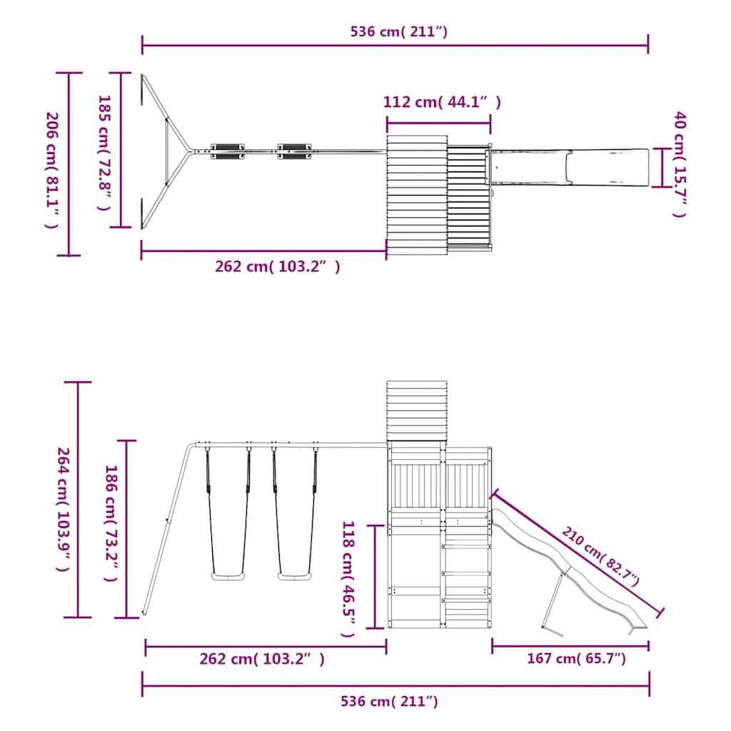 • Večnamenski center: Lesen igralni okvir ima 118 cm visoko ploščad, odlikujejo pa ga valovit tobogan, dvojna gugalnica in peskovnik. Vaši malčki lahko k zabavi povabijo tudi svoje prijatelje.