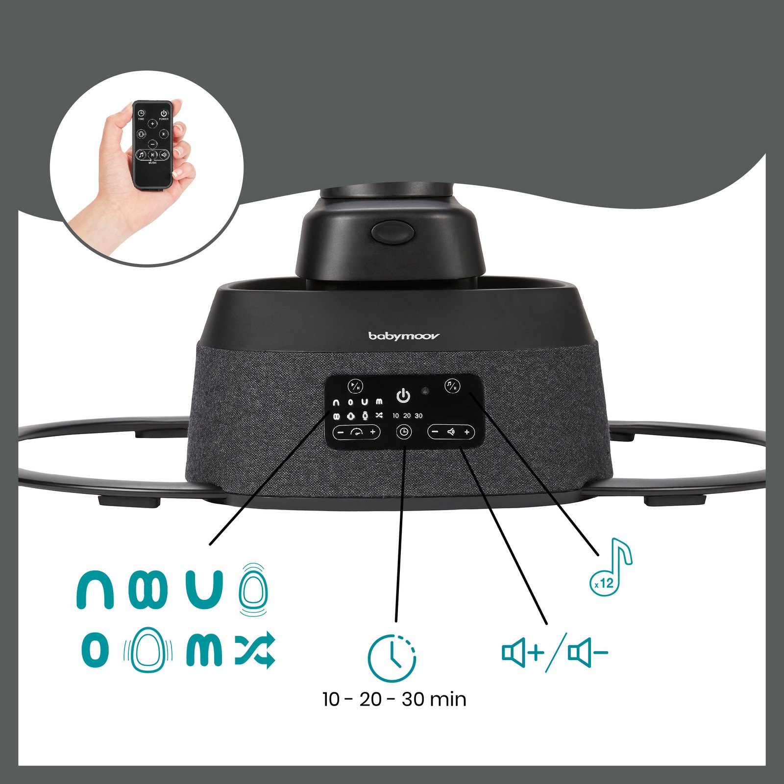 • Priložen daljinski upravljalnik za nastavitev zibanja, hitrosti, časovnika in zvoka