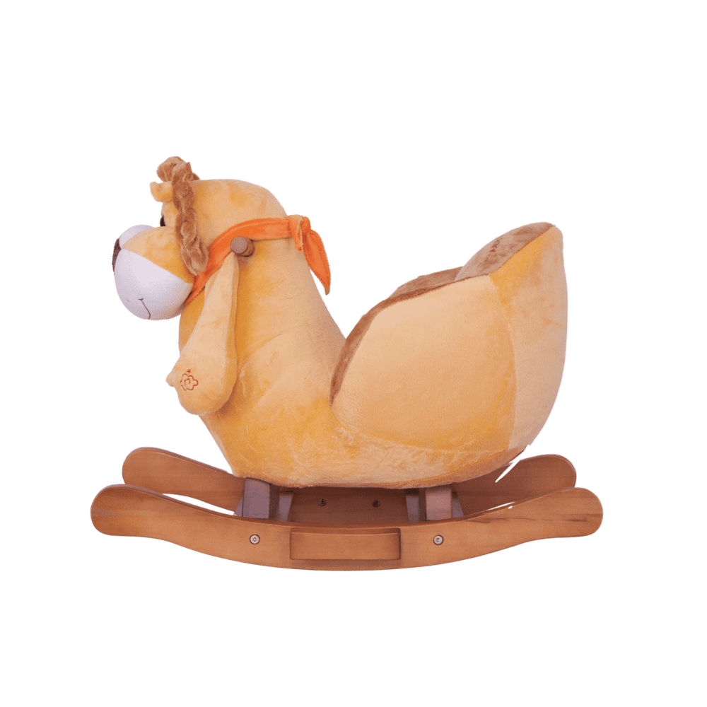Dimenzije: 61×34×51 cm Višina sedeža: 28 cm Starost: 18m+ Material: les, pliš Nosilnost: 20 kg Napajanje: baterija (ni zamenljiva) Celoten opis