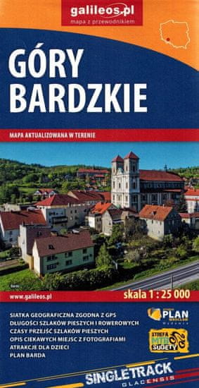 Zložljiva turistična karta Bardskih gora v merilu 1 : 50.000. Zajema mesta Ząbkowice Śląskie, Srebrna Góra, Bardo in Kłodzko. Zahvaljujoč temu natančnemu merilu so označene vse pohodniške in kolesarske poti, skupaj z njihovimi dolžinami in časi hoje, pa tudi koristne informacije za turiste, kot so spomeniki, nastanitve, restavracije ter meje zavarovanih območij in rezervatov. Zanimivi objekti so označeni z rumeno barvo.