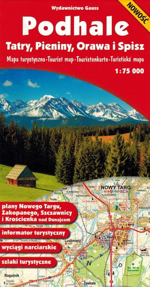 Zložljiva turistična karta Podhalja, Tater, Pienin, Orave in Spiša v merilu 1 : 75.000, ki jo je izdala založba Gauss.