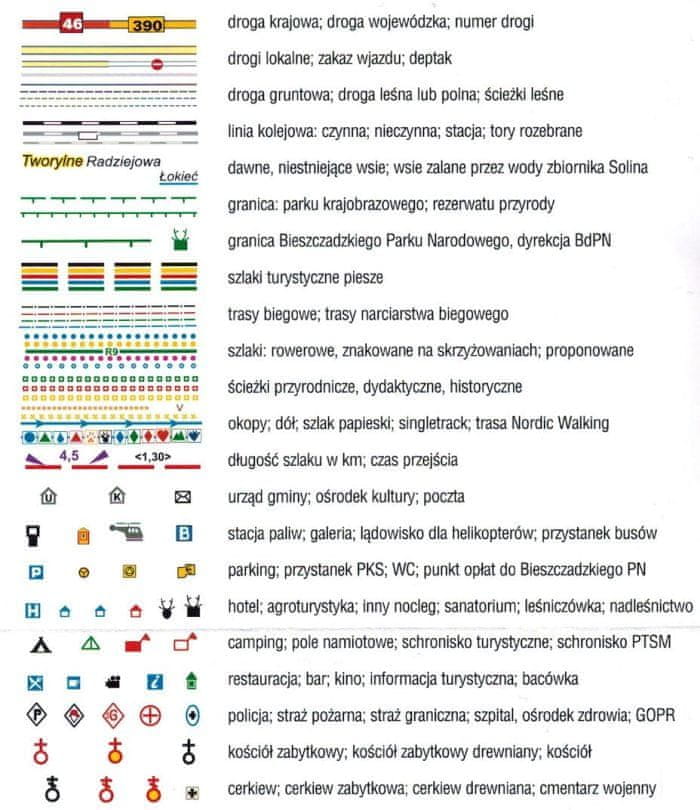 Obseg karte je označen z: Hoczewom na zahodu, Leskom in Olszanico na severu, Chrewtom na vzhodu in Łopienko na jugu. V osrednjem delu zemljevida se nahajata Solinsko in Myczkowsko jezero.