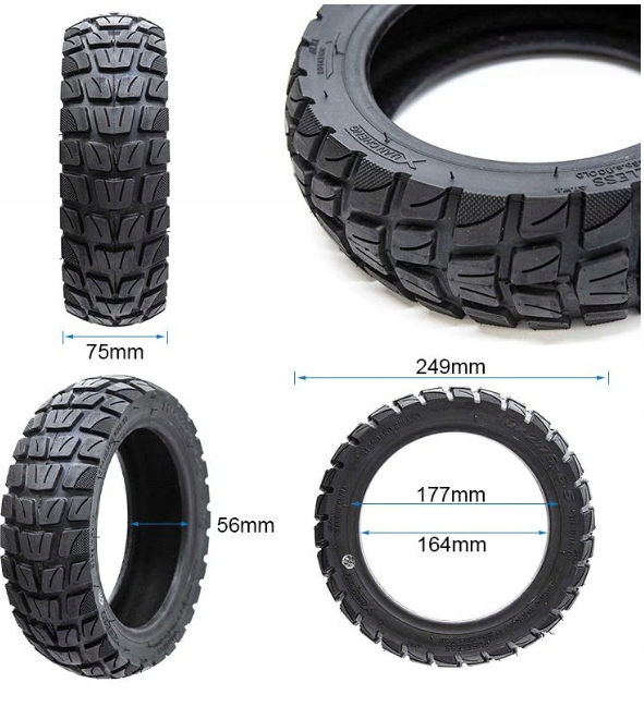 Trdna in vzdržljiva pnevmatika za električne skuterje – idealna za mestne ceste in zahtevnejše površine. Izvedba brez zračnice , izdelana iz visokokakovostne gumene zmesi, zagotavlja dober oprijem in udobje vožnje.