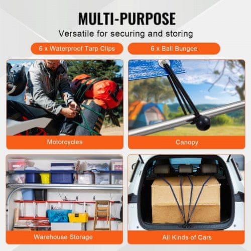 Ta 32-osaline tugev bungee nöörikomplekt sobib ideaalselt esemete kinnitamiseks või organiseerimiseks kodus, reisimisel või õues. Varustatud tugevate terasest J-konksudega ja mitmes suuruses elastsete rihmadega, mis pakuvad usaldusväärset hoidmist ja paindlikkust. Mõõtmed: 1020×25×22 mm. Celoten opis