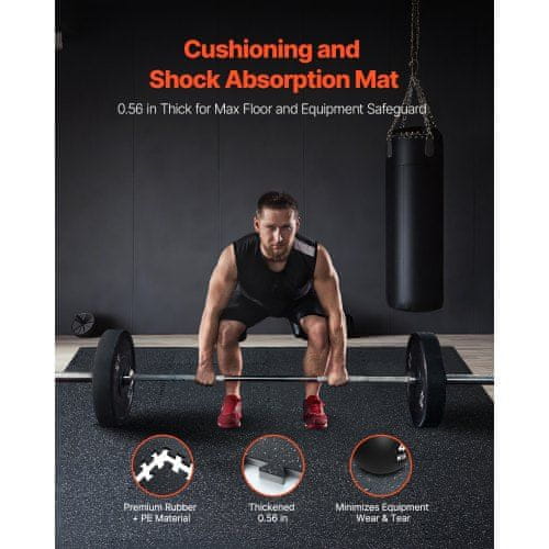 VEVOR Telovadbeni podni podlogi 12 ploščic povezljive 635x635x14 cm črne z belimi pikami