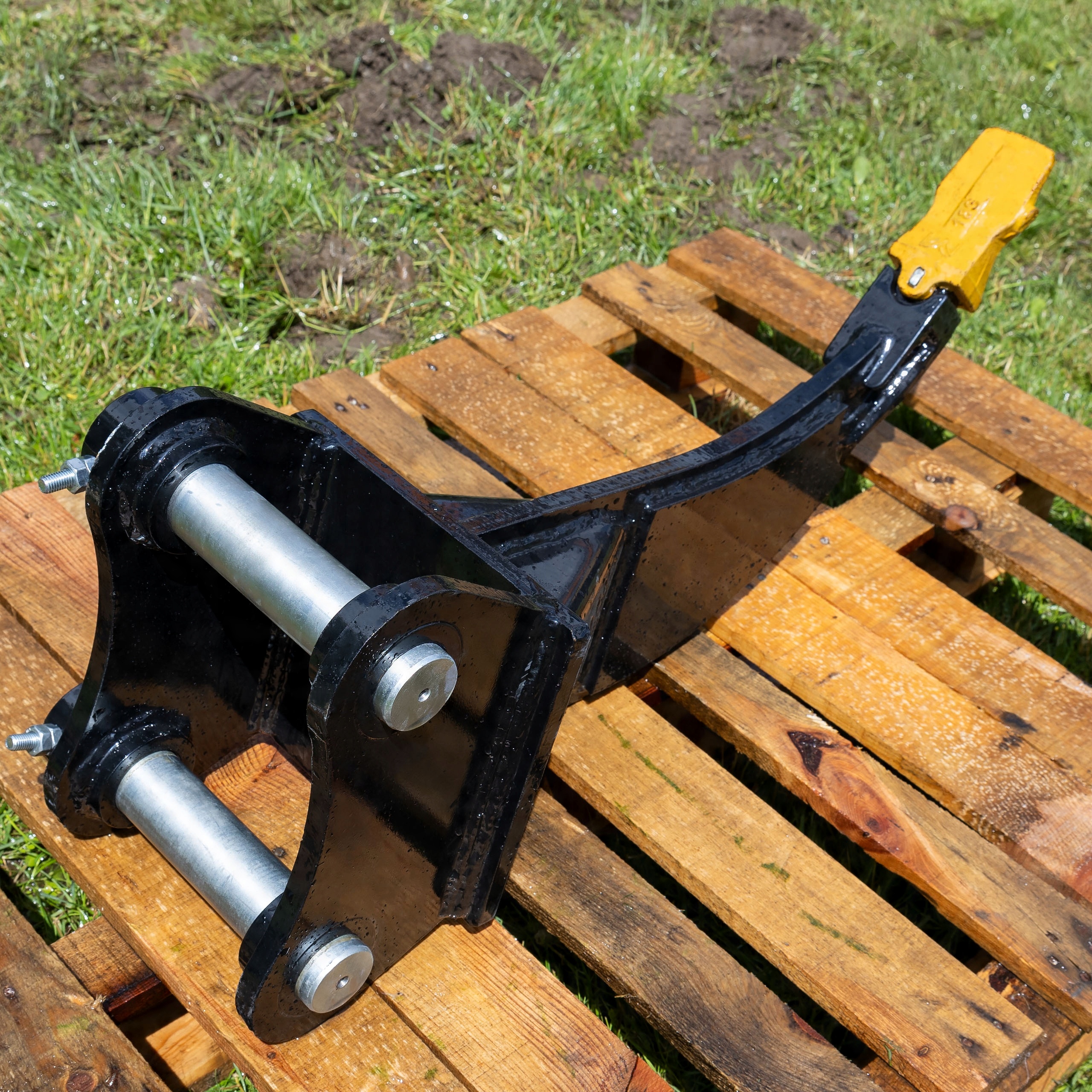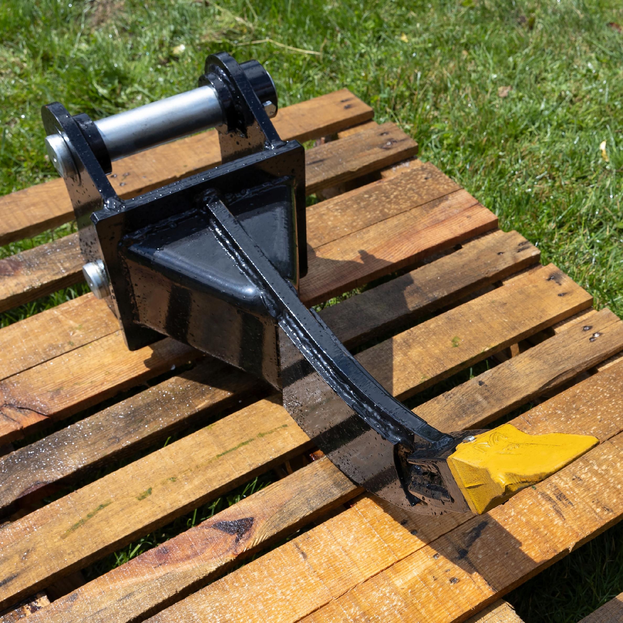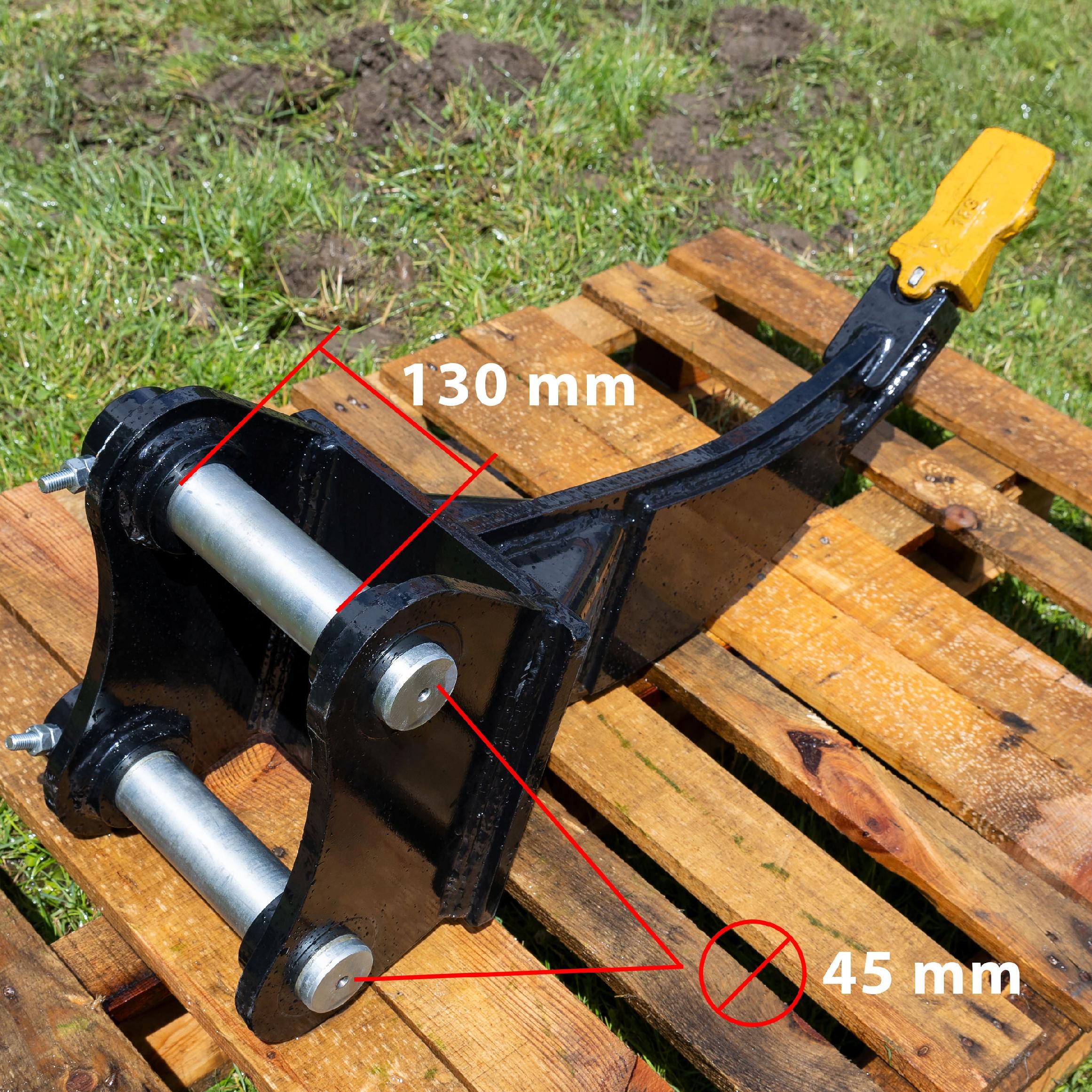 ✅ Ripper je opremljen s standardnim nosilcem: razmik med nosilci je 130 mm, premer sornika pa 45 mm. To pomeni, da se brez dodatnih prilagoditev prilega večini bagrov z maso do 4 tone.
