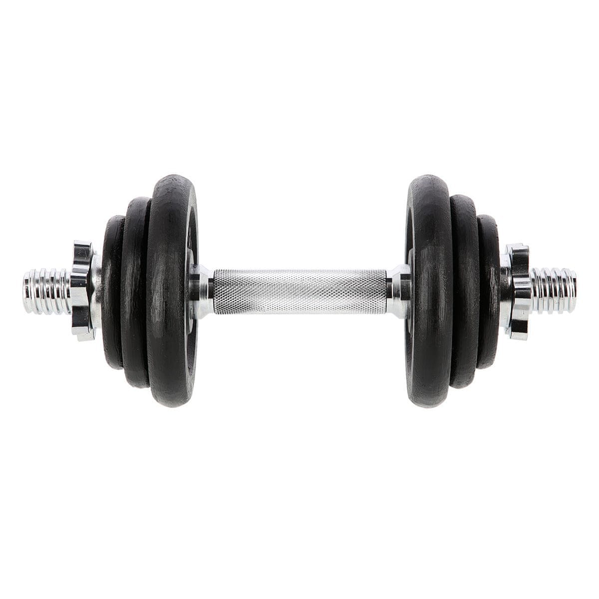Tyč má drážkovanú rukoväť, takže sa počas cvičenia nekĺže. Závitové činky spolu s hviezdicovými objímkami zaručujú rovnomerné rozloženie hmotnosti.