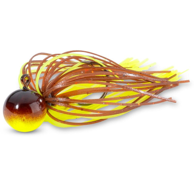 Kratke, naprej usmerjene gumijaste obrobe zagotavljajo boljšo stabilnost na dnu in bolj naravno gibanje vabe. Glava je izdelana iz okolju prijaznega materiala cinka brez svinca, kar prispeva k okolju prijaznejšemu pristopu.