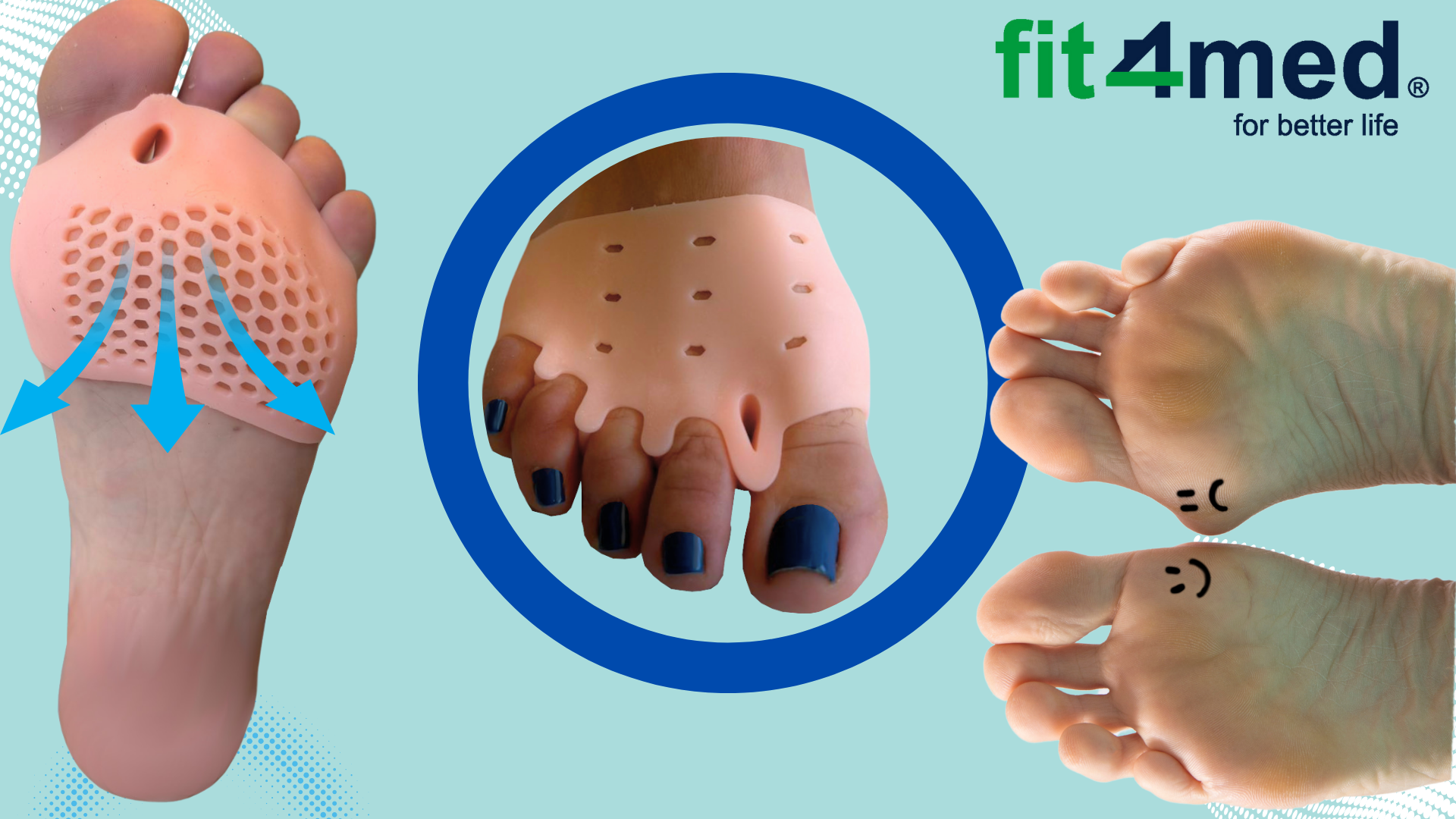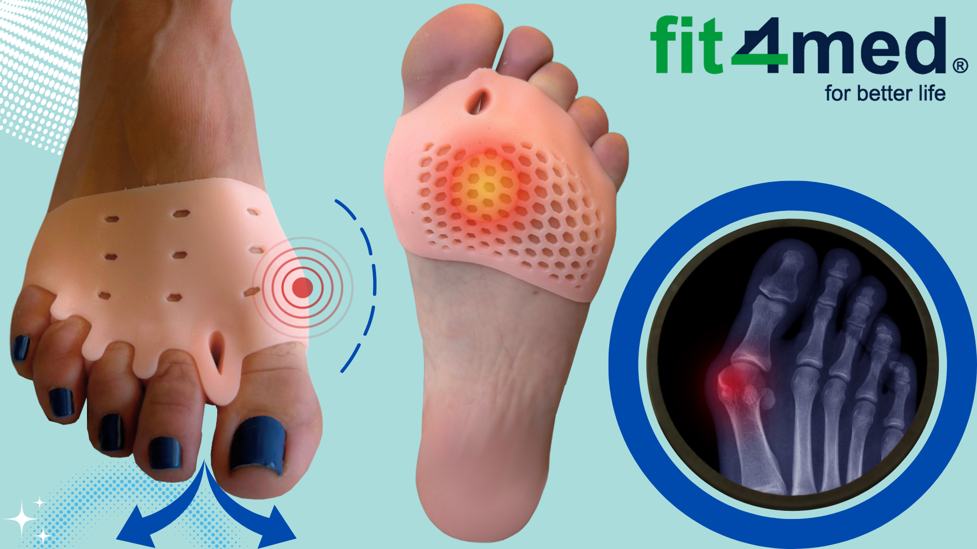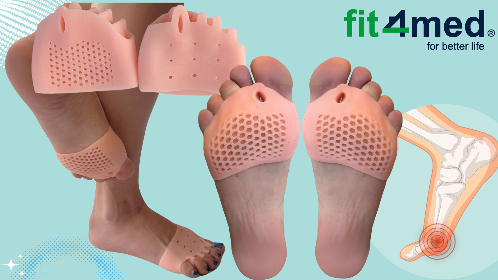 ➡️GELSKI VLOŽKI ZA BUNIONE Z ZAŠČITO ZA SPREDNJI DEL STOPALA (PAR) FIT4MED