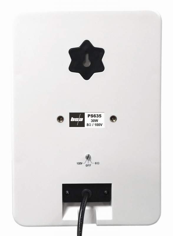 Dvosmerni sistem zvočnikov s sodobnim dizajnom za notranji in zunanji zvok (IP65). Na zadnji strani je vrtljivo stikalo za 100V in nizkoimpedančni priključek 8ohmov. Trdna in trpežna plastična pregrada je opremljena s 6,5 "wooferjem in visokotoncem. Sistem vključuje nastavljiv vrtljivi nosilec za montažo na steno.