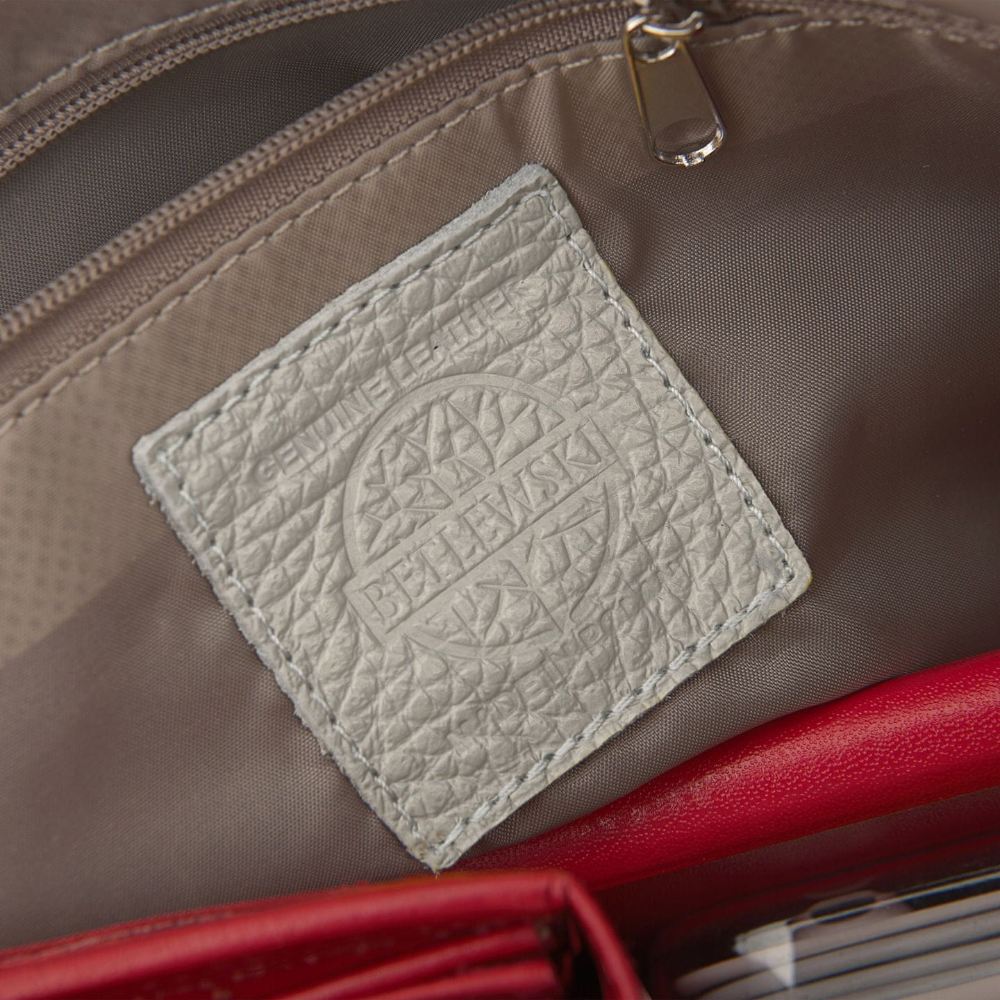 Ženska usnjena torbica, naravno usnje, Betlewski®. Ta ženska torbica iz kolekcije ANYA znamke Betlewski® je odlična izbira, ker: je izdelana na Poljskem – model, ki ga je oblikovalo poljsko podjetje, specializirano za čudovite usnjene izdelke, izdelana je iz naravnega, polnozrnatega usnja s prodnato teksturo, ima nežen, svetlo siv odtenek, je vedno modna, ima preklop na sprednji strani, ima udoben naramni trak, katerega dolžino je mogoče poljubno nastaviti. Ta svetlo siva torbica za čez ramo – udobje in moden videz. Ta majhna, pravokotna torbica za čez ramo z vpadljivim preklopom na sprednji strani je odličen model za ženske, ki ljubijo udobje in lepe, ženstvene dodatke. Torbica je majhna, njen dizajn pa se odlično dopolnjuje tako s športnim kot romantičnim slogom. Torbica iz kolekcije ANYA je izdelana iz naravnega, polnozrnatega govejega usnja z značilno prodnato teksturo. Priložen je dolg, nastavljiv trak za nošenje torbe na rami. Ima številne predalčke in žepe, tako da lahko vedno uživate v udobju in imate vse potrebne stvari pri roki. Dizajnerska torbica, izdelana na Poljskem. Torbica ANYA je majhna, a v njeno kompaktno notranjost zlahka spravite vsakdanje potrebščine – zvezek, telefon, denarnico in manjše kozmetične pripomočke. Logotip blagovne znamke Betlewski® je na sprednji strani torbice v srebrni barvi. Logotip je trdno pritrjen na usnje, zato ste lahko prepričani, da bo torba zdržala dolgo časa. Izdelano na Poljskem – izberite poljski izdelek in podprite poljsko gospodarstvo! Pravo usnje z zrnato teksturo. Torbica je izdelana iz matiranega kravjega usnja. To usnje ima edinstveno teksturo z zrnato teksturo, zaradi česar je bolj odporno na praske. Pravo usnje je plemenit material, ki bo zdržal leta. 100 % pristno. Torbica je opremljena z etiketami, ki potrjujejo pristnost izdelka, in informacijami o tem, kako skrbeti za pravo usnje. Našli boste tudi vzorec usnja, uporabljenega pri njeni izdelavi. To so podrobnosti, ki vam dajejo zaupanje, da ste dobili torbo, ki vam bo služila dolga leta in vas vsak dan navduševala s svojo lepoto. Priročen žep pod pokrovom. Pod pokrovom boste našli en majhen žep z zadrgo. To je dobro skrit in varen predal, idealen za majhne predmete, kot so telefon ali ključi od hiše. Končna obdelava in strojna oprema vas nikoli ne bosta razočarala. Torba ima močno srebrno strojno opremo in zadrge. Popolnoma se dopolnjujejo z usnjem in zagotavljajo varnost vaših stvari. Večpozicijska nastavitev dolžine traku omogoča nošenje torbe na dolgem (približno 120 cm) usnjenem naramnem traku. Nastavljiv je lahko na pet različnih dolžin. Trak je trajno pritrjen na srebrne obročke. Prostorna notranjost je razdeljena na dva dela. Torba ima dva predala z zadrgami na vrhu. Ta predala ohranjata vsebino torbe dobro zaščiteno, poleg tega pa lahko svoje stvari organizirate, kakor koli želite! Žep za telefon: V enem predalu je en usnjen žep, idealen za shranjevanje pametnega telefona. Notranjost je obložena z elegantno podlogo, ki se ujema z tonom usnja. Notranje shranjevanje vaših majhnih predmetov: V notranjosti je en majhen žep z zadrgo, idealen za majhne predmete. Vanj lahko shranite predmete, ki so vam najbolj dragi. Močna zadrga bo zagotovila, da se ne izgubijo ali padejo ven. Funkcionalni žep na hrbtni strani torbe: Na hrbtni strani torbe je še en žep, ki se zapira z močno zadrgo. Idealen je za shranjevanje majhnih, priročnih predmetov. Lahko ga imate pri roki za stvari, ki jih imate raje pri roki, kot so parkirno dovoljenje ali vozovnica za javni prevoz. Cenimo pristnost in visoko kakovost. Nakupu je priloženo potrdilo o pristnosti, natisnjeno na lepem papirju. To potrjuje, da je material, iz katerega je izdelana torba, najvišje kakovosti. Naše stranke so večkrat poudarile, da jim je to potrdilo dalo zaupanje, da kupujejo lep izdelek znane blagovne znamke. Parametri: Indeks: TWB-DOL-11-JSZA N Material: Pravo usnje Barva: Svetlo siva Znamka: Betlewski Širina: 29 cm Višina: 22 cm Globina: 7 cm Dolžina traku: 120 cm