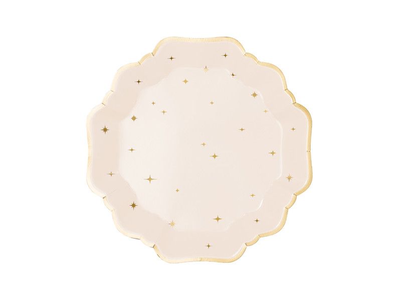 Papirnati krožniki Zvezde, bež z zlatimi zvezdicami, premer približno 21 cm (1 paket / 6 kosov)