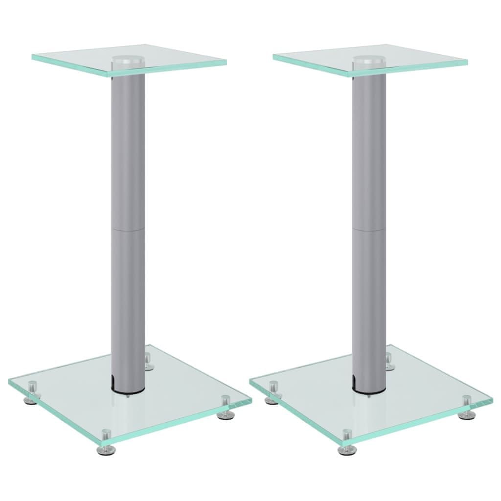 Vidaxl Stojalo za zvočnike 2 kosa srebrno kaljeno steklo 1 steber