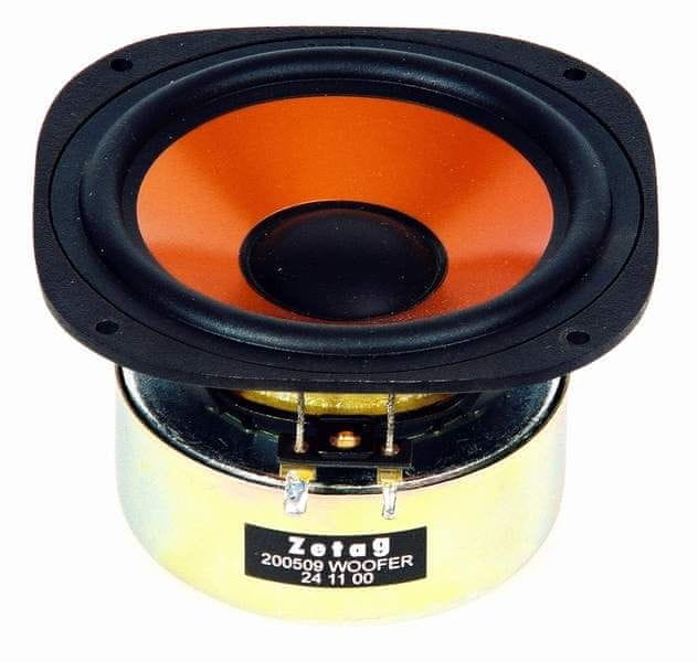 5.25 "High end zvočniki ameriškega podjetja ZETAG. Membrana je iz polipropilena v kombinaciji z bakrom. Zvočnik ima oklopljen magnet. Košara je iz aluminijeve zlitine. Oranžna
