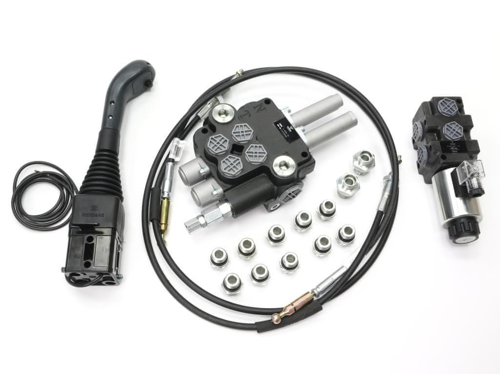 shumee Set za nakladalnik TUR - 80L 2-sekcijski razdelilnik + elektromagnetni ventil + krmilna palica z gumbom + povezovalni elementi + 1500 mm kroglični kabli VOIMA