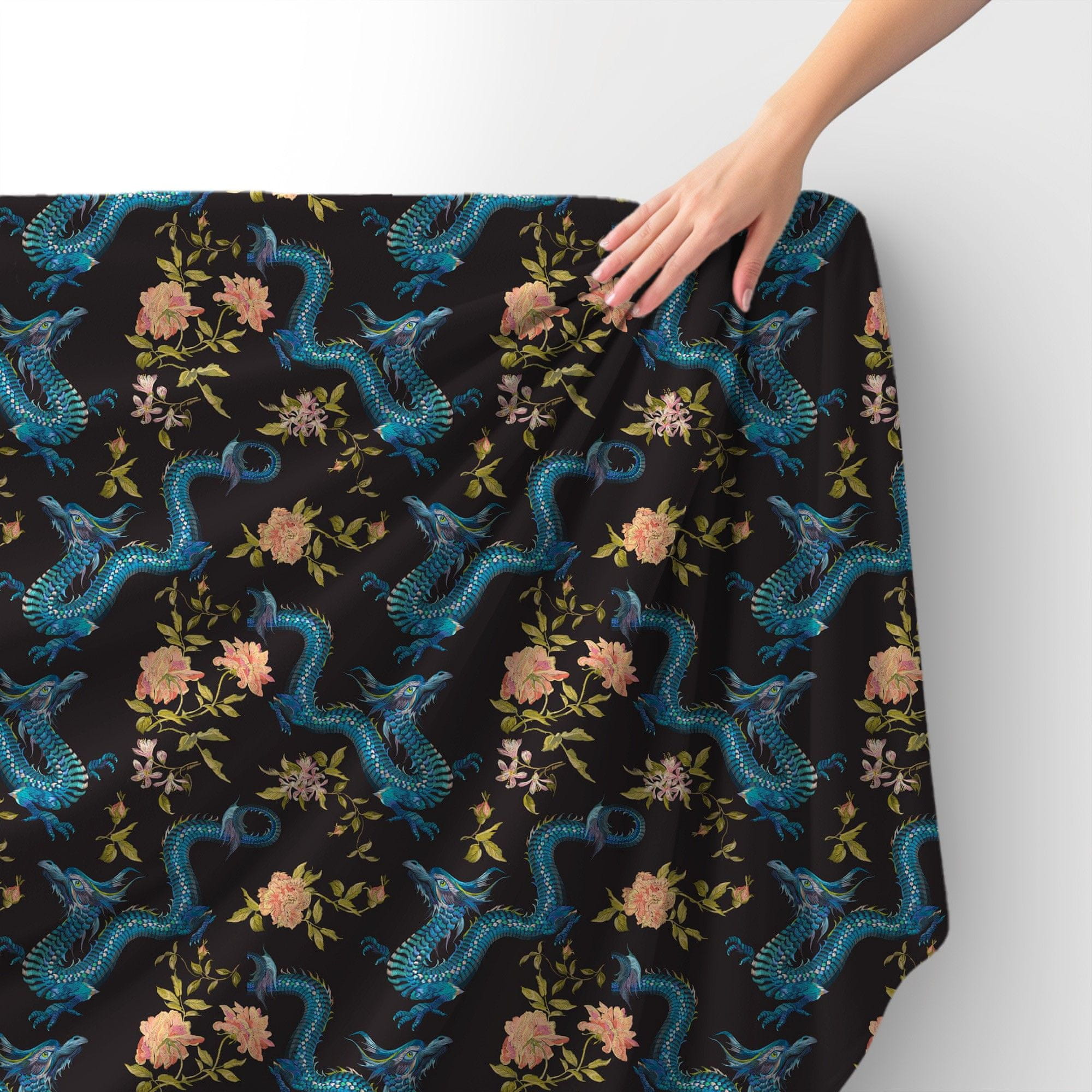 shumee Kraljevski žametni material iz poliestra za šivanje - motiv modrih zmajev