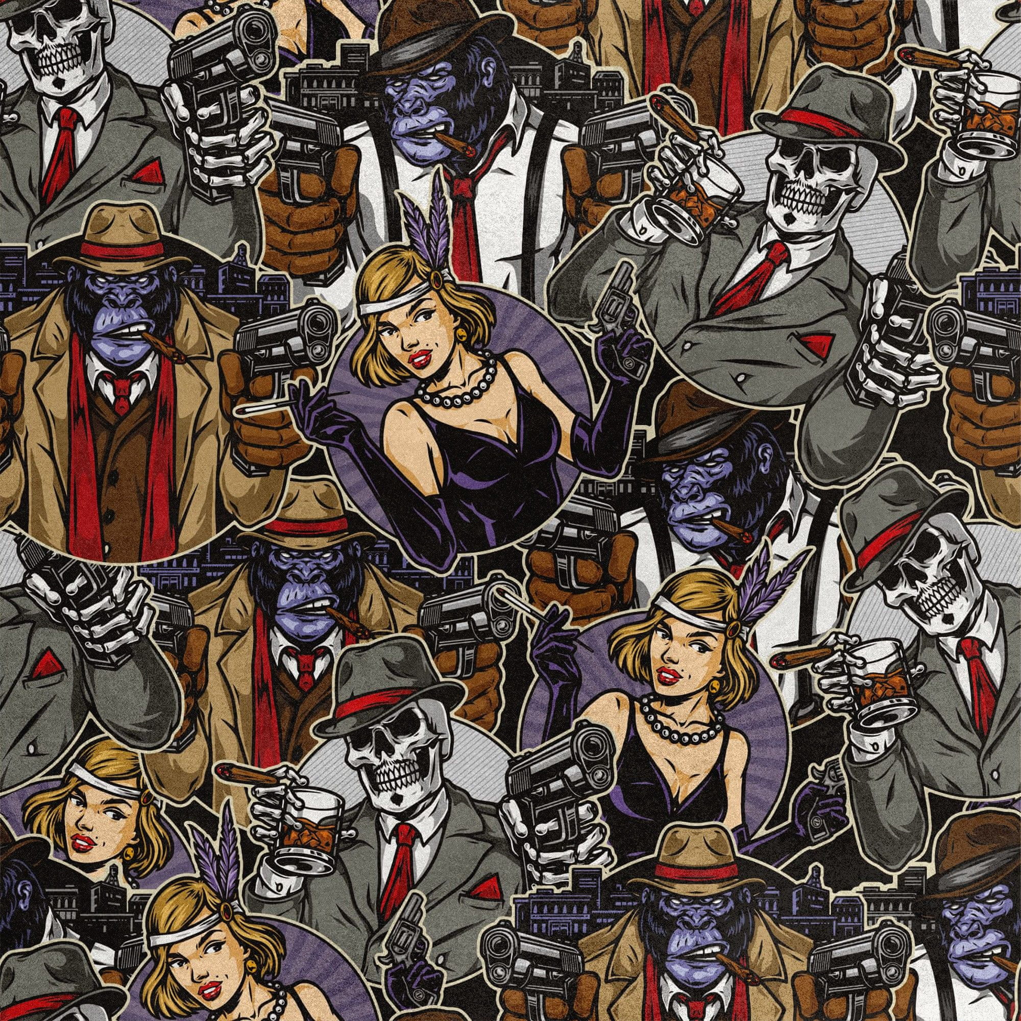 shumee Kraljevski žametni material iz poliestra za šivanje - motiv gorile in okostnjaka gangsterja